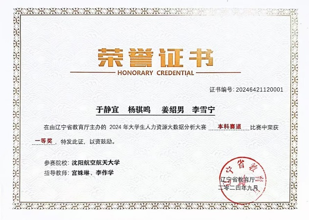 为了增强学生的研究能力、自我学习能力和应用能力,人力资源管理专业不仅大力推动学生在校期间积极参加各类各级专业竞赛,并且,2018年承办了承办全国大学生人力资源管理知识技能东北赛区大赛,2022年开始,根据人力资源管理发展趋势,连续4年承办辽宁省大学生人力资源大数据分析大赛,2024年赛事吸引了全省31所高校的350余名学生参赛。近年来,不仅90%以上的专业教师具有指导学生参加学科竞赛经验,而且,参赛学生获得省级赛事奖项数十项,每年均有学生闯入全国总决赛。学科竞赛的指引下,学生的专业知识学习积极性不断提高,专业能力、自我学习能力获得了用人单位一致的认可。