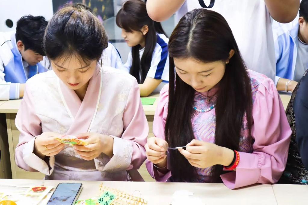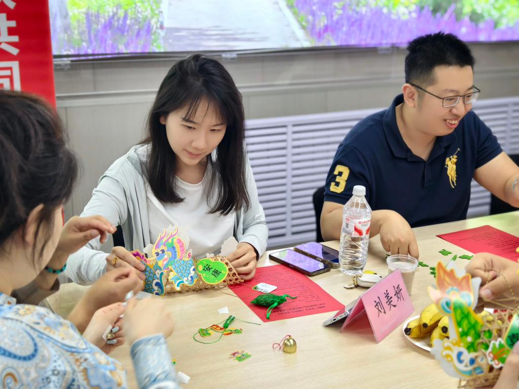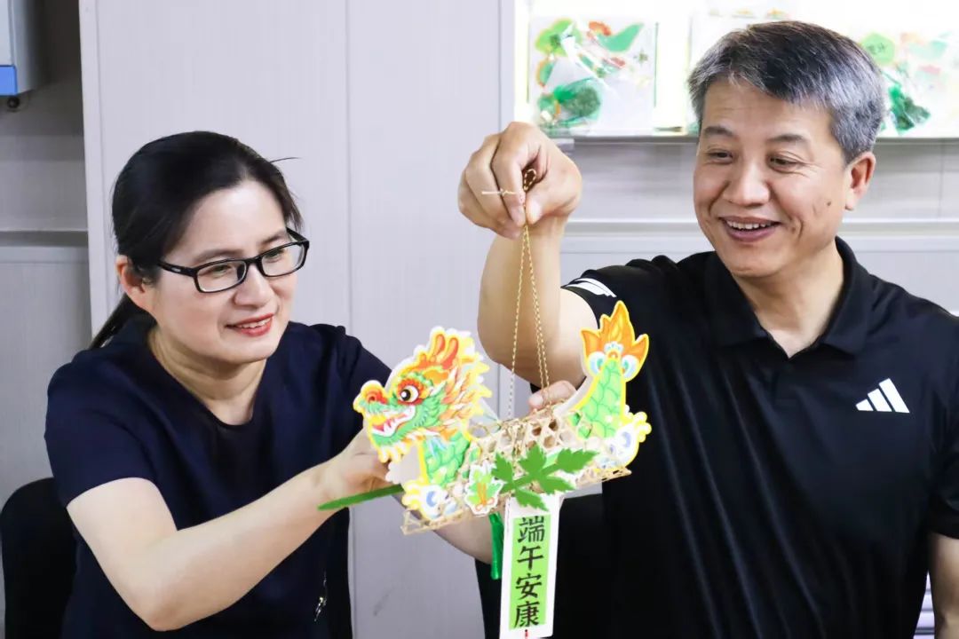 随后,现场师生自由组队,参与手工龙舟制作比赛,通过协作完成龙舟模型,在实践中直观感受“赛龙舟”所蕴含的团结精神。当形态各异的龙舟作品在手中成型,传统民俗的魅力通过实践体验深植参与者心中。