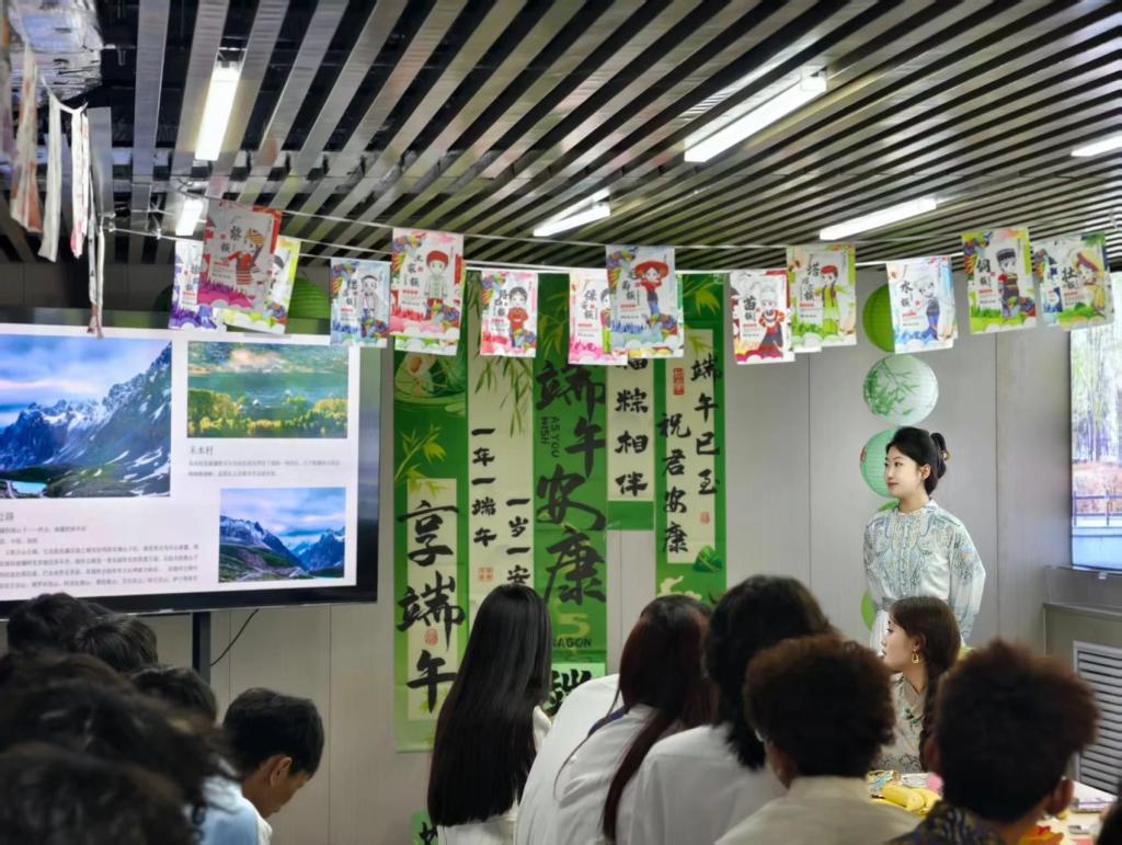 首先,学院2023级蒙古族学生苗文溪从节日起源、传统习俗、历史发展、古诗词中的端午意象、国外传播发展五个维度,系统解读端午节的文化内涵,并以“端午节是活着的文化”为核心,引发师生对文化传承的深入思考。