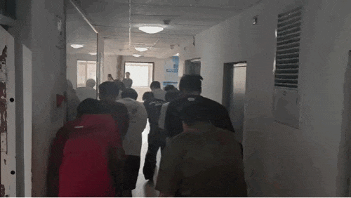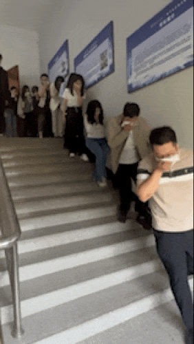 ·公寓管理人员迅速打开宿舍所有安全出口,在学生干部的引导下,楼内学生采取压低身体、捂住口鼻的正确姿势,快速、有序地通过安全通道离开楼内,在室外安全区域集合。