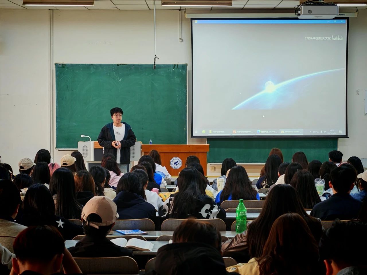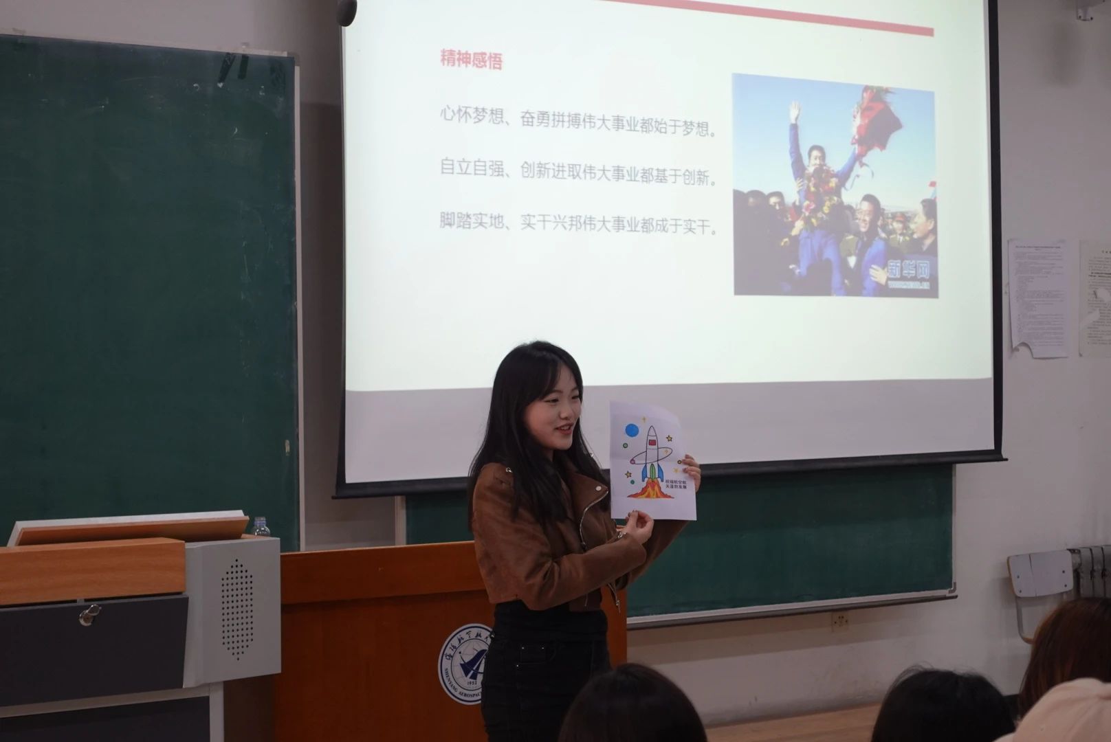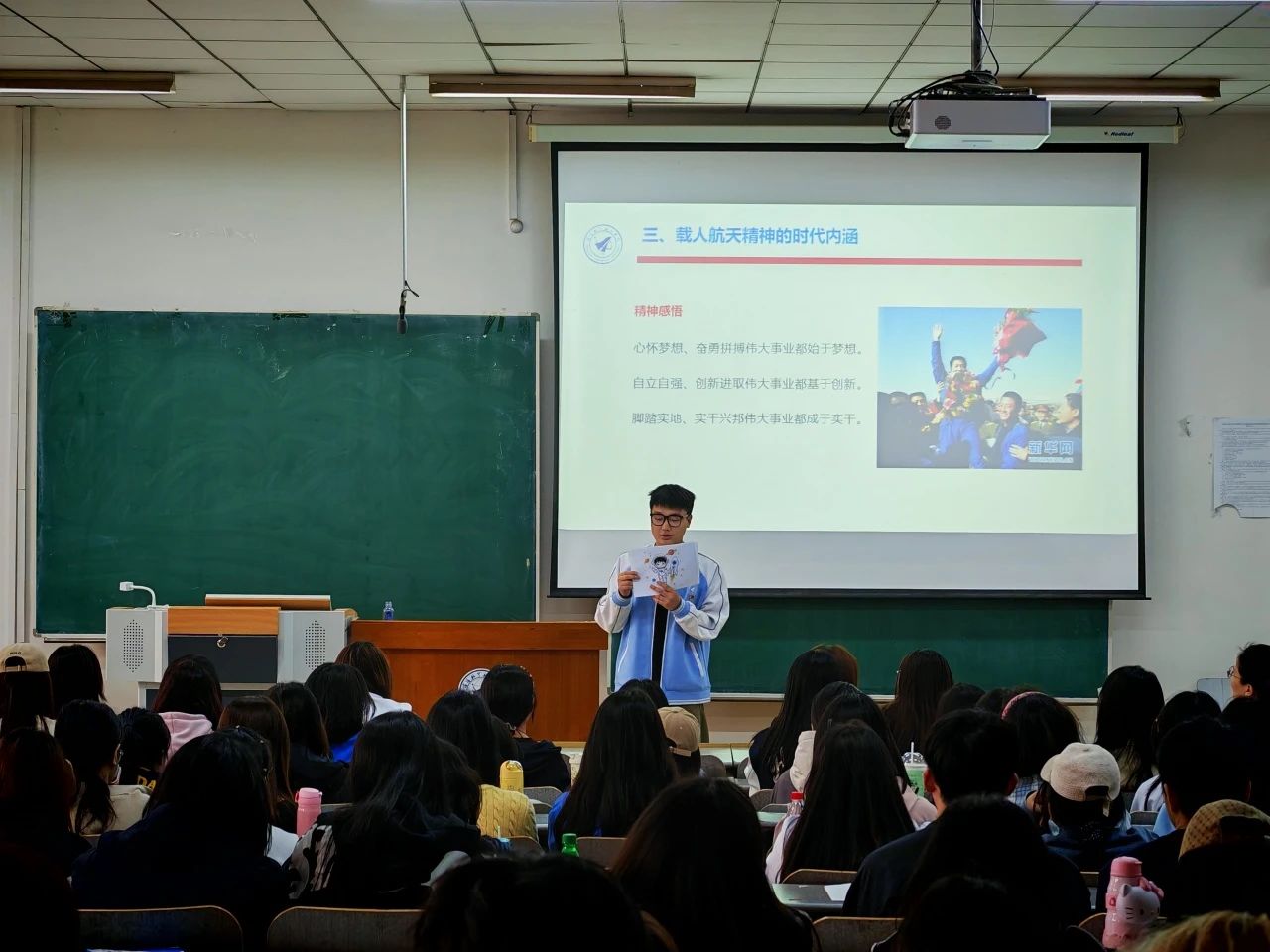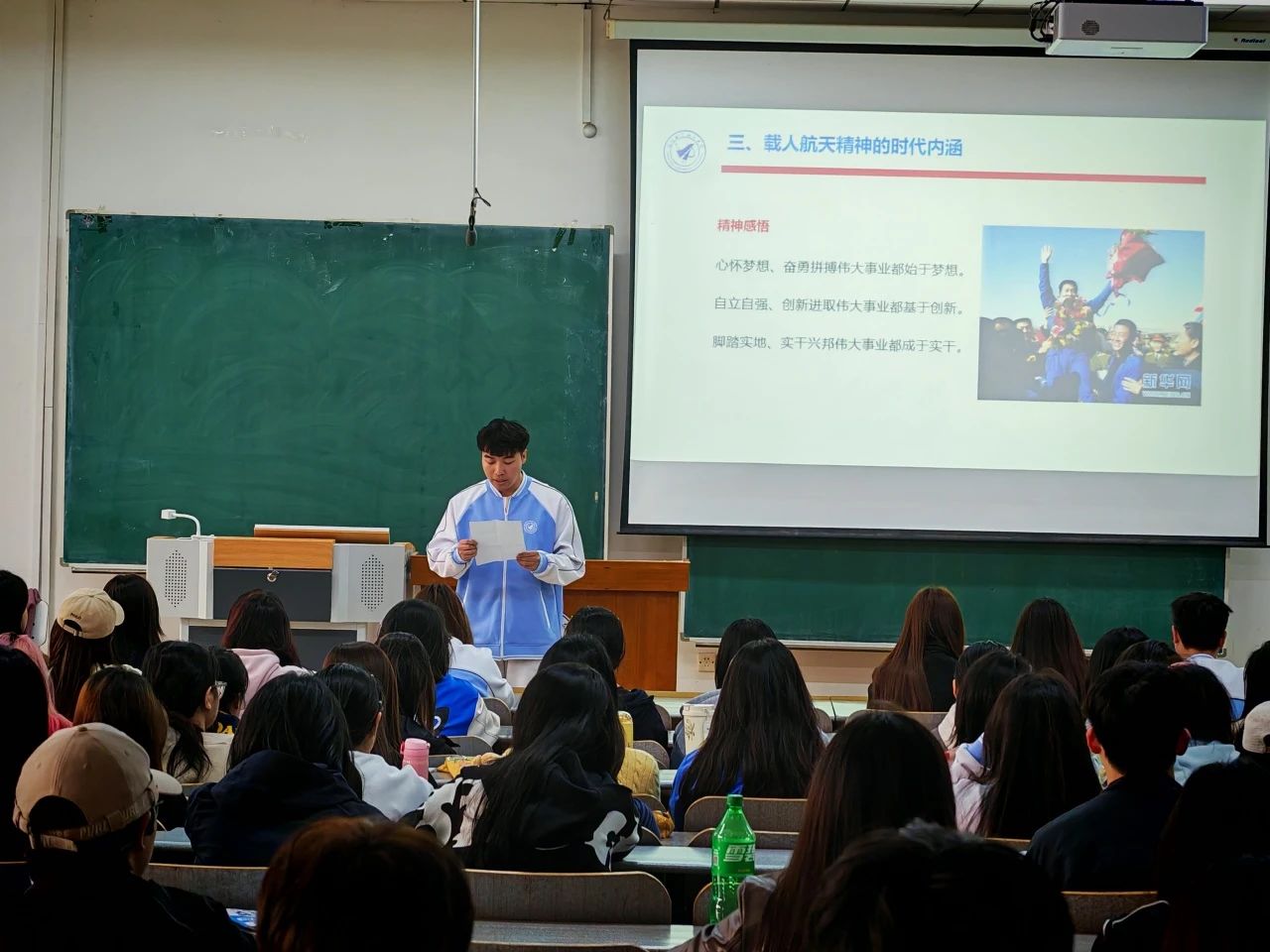 在课堂上,高丹书记为同学们讲述了载人航天精神的内涵。从1970年“东方红一号”卫星成功发射,到如今空间站建设稳步推进,中国航天人在党的领导下,攻克了无数技术难题,实现了一个又一个突破。这背后,是一代又一代航天人默默奉献、艰苦奋斗的结果。载人航天精神的历史背景源于中国载人航天工程的实施和发展,这一精神体现了中国航天人在面对国内外技术封锁和重重困难时,所展现出的特别能吃苦、特别能战斗、特别能攻关、特别能奉献的精神。从载人航天精神的内容中我们能感悟到,心怀梦想、奋勇拼搏伟大事业都始于梦想;自立自强、创新进取伟大事业都基于创新;脚踏实地、实干兴邦伟大事业都成于实干。