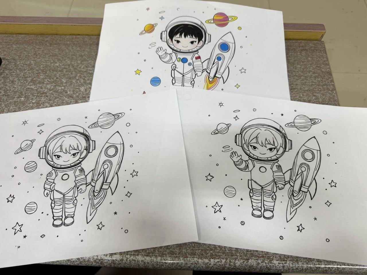 课堂上,同学们还积极展示了自己创作的航天员和飞船画作,用色彩和线条表达着对航天的热爱与向往。有的同学笔下的航天员在浩瀚宇宙中探索,眼神坚定;有的描绘了神舟飞船腾飞瞬间,气势磅礴。火箭发射之前,同学们在手机屏幕上打出对中国航天的祝福,在课堂上为“学长王杰”、神舟二十号航天员乘组、中国航天“应援打CALL”。同学们的祝福和作品不仅展现了沈航经管学子的艺术才华,更体现出我们对航天梦想的追求