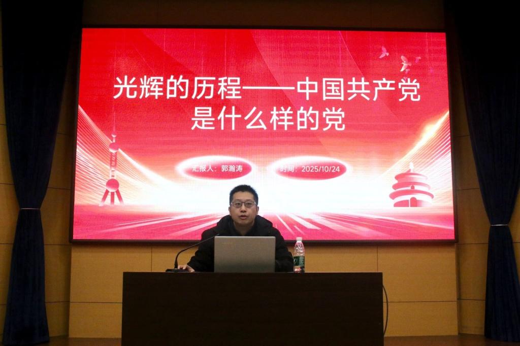 第一讲“中国共产党是什么样的党”,学生第一党支部书记郭瀚涛系统阐释了中国共产党的性质、发展历程与根本宗旨,深化了学员对“中国共产党是什么样的党”的认识,号召大家勇担时代重任,以实际行动争取早日入党。